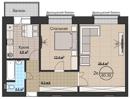 2с - 60.3 м2