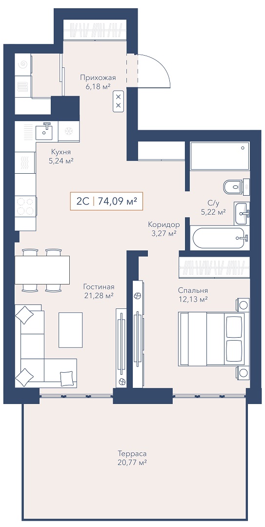 2с - 74.09 м2