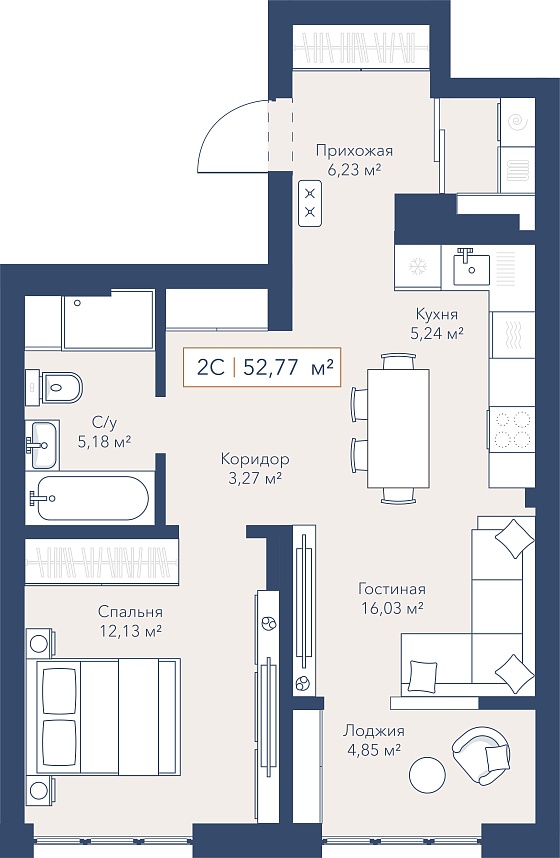 2с - 52.77 м2