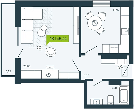 1с - 43.67 м2
