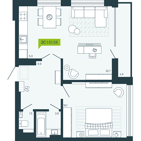 2с - 61.58 м2