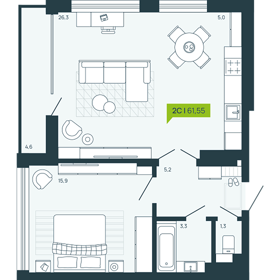 2с - 61.55 м2