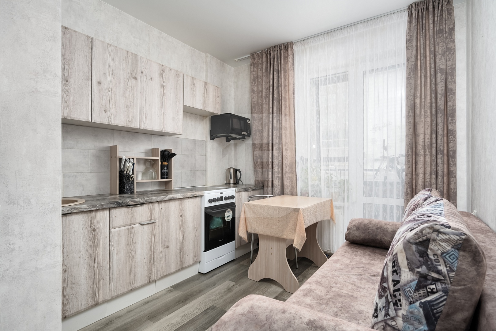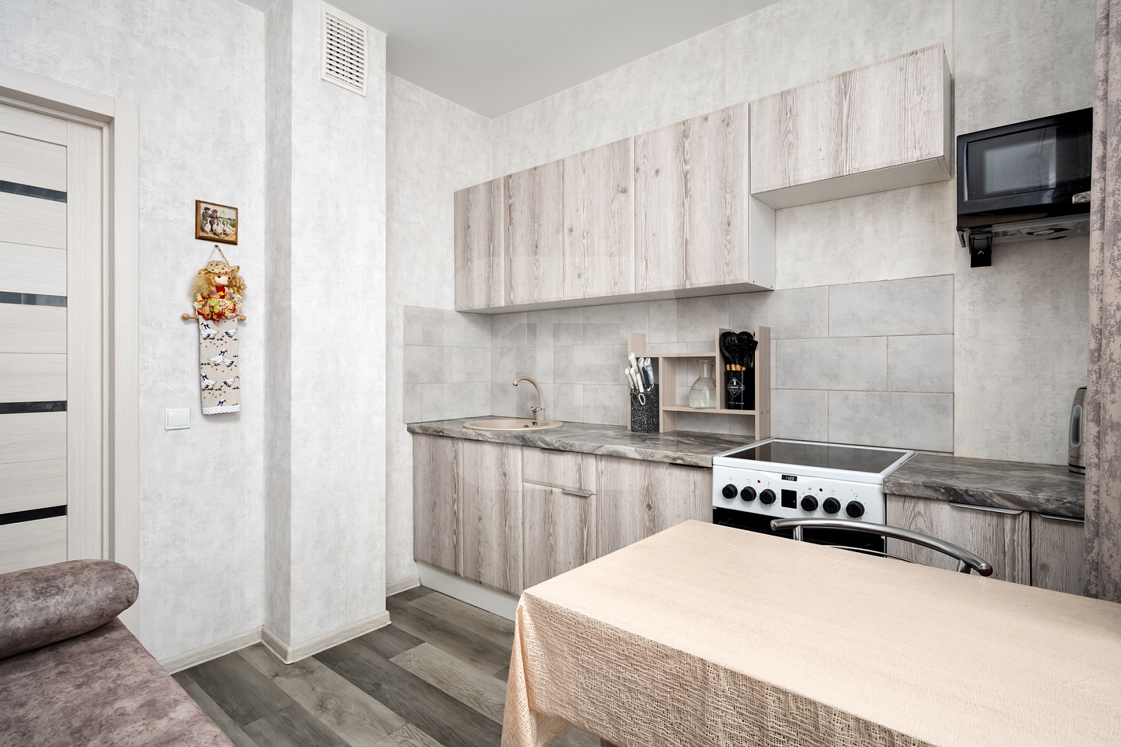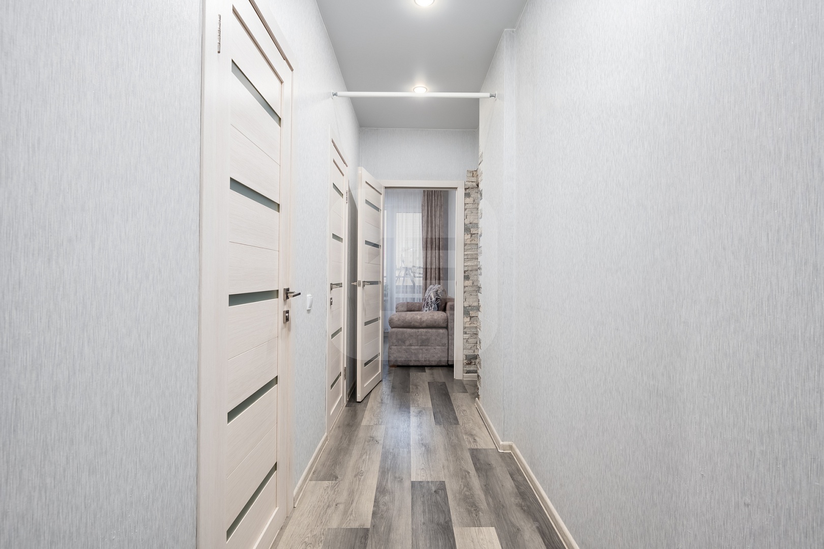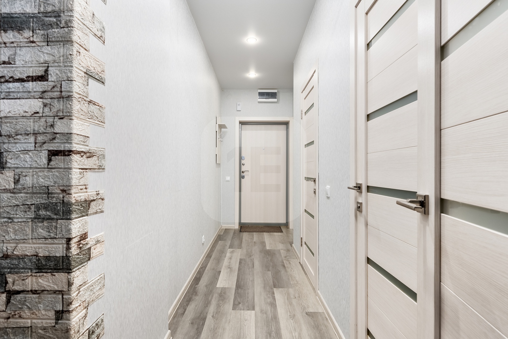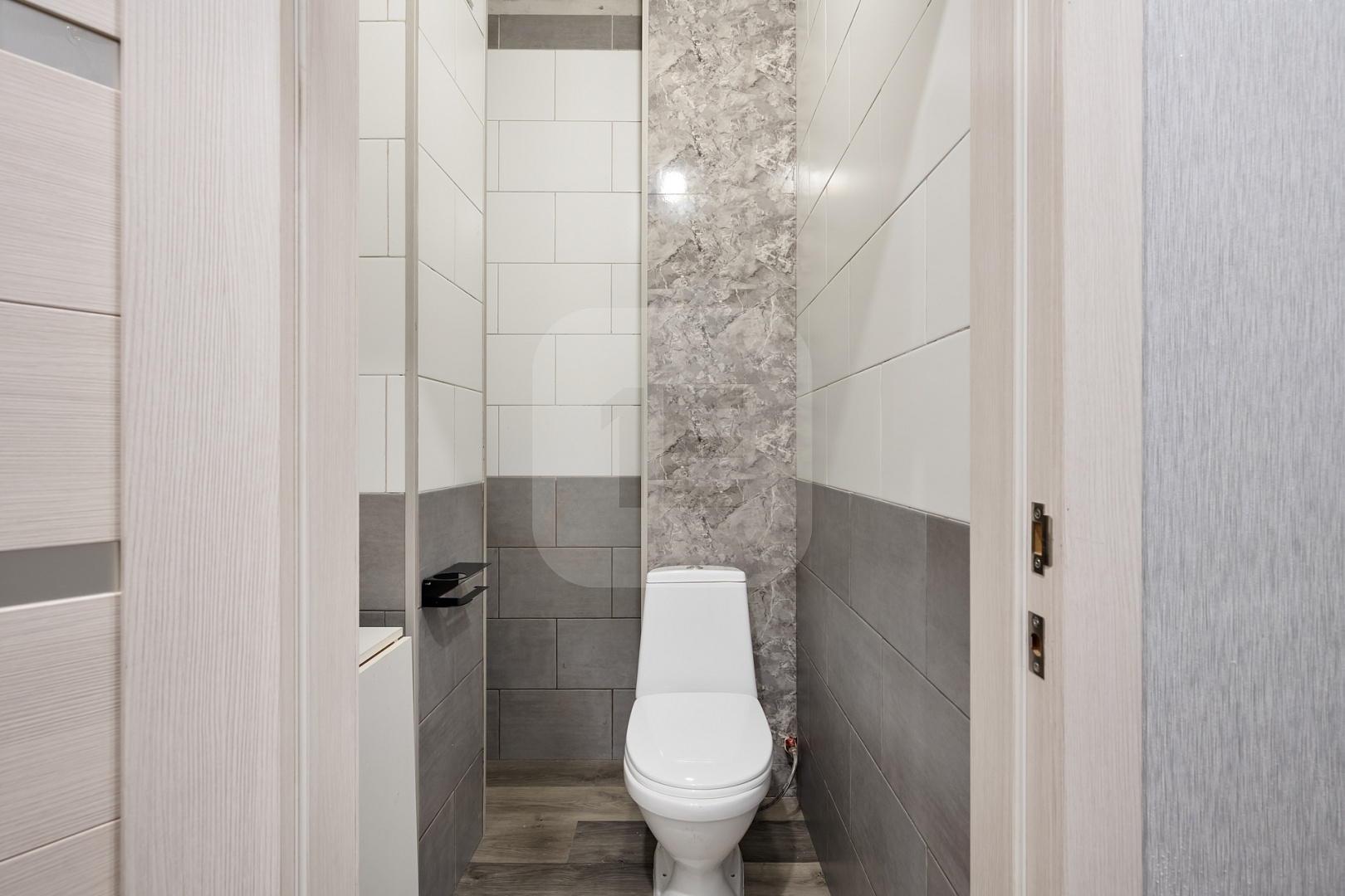 Эргономичная планировка квартиры включает в себя: вместительную прихожую с зоной гардеробной, 2 сан.узла, уютную кухню правильной формы с выходом на лоджию, наполненную светом жилую комнату, площадью 16.55кв.м . Ремонт в квартире выполнен в светлых тонах, что делает проживание в квартире ещё более комфортным. Мебель и техника в квартире остается по договоренности.