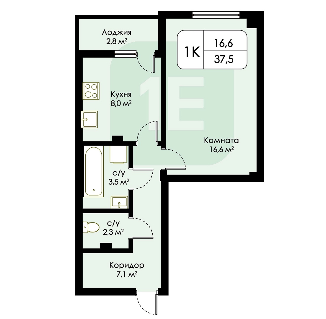 Квартира имеет общую площадь 37,5кв.м и располагается на 1-м этаже, что обеспечивает следующие преимущества: независимость от лифта, легкую эвакуацию в экстренных ситуациях, высокий напор воды, лучшее теплоснабжение, отсутствие соседей снизу,  а также удобство при переноске мебели и вещей.