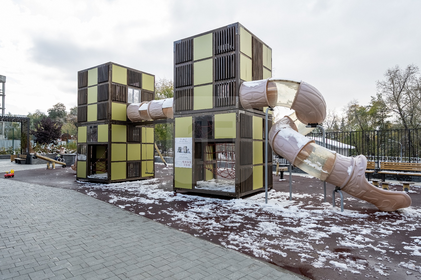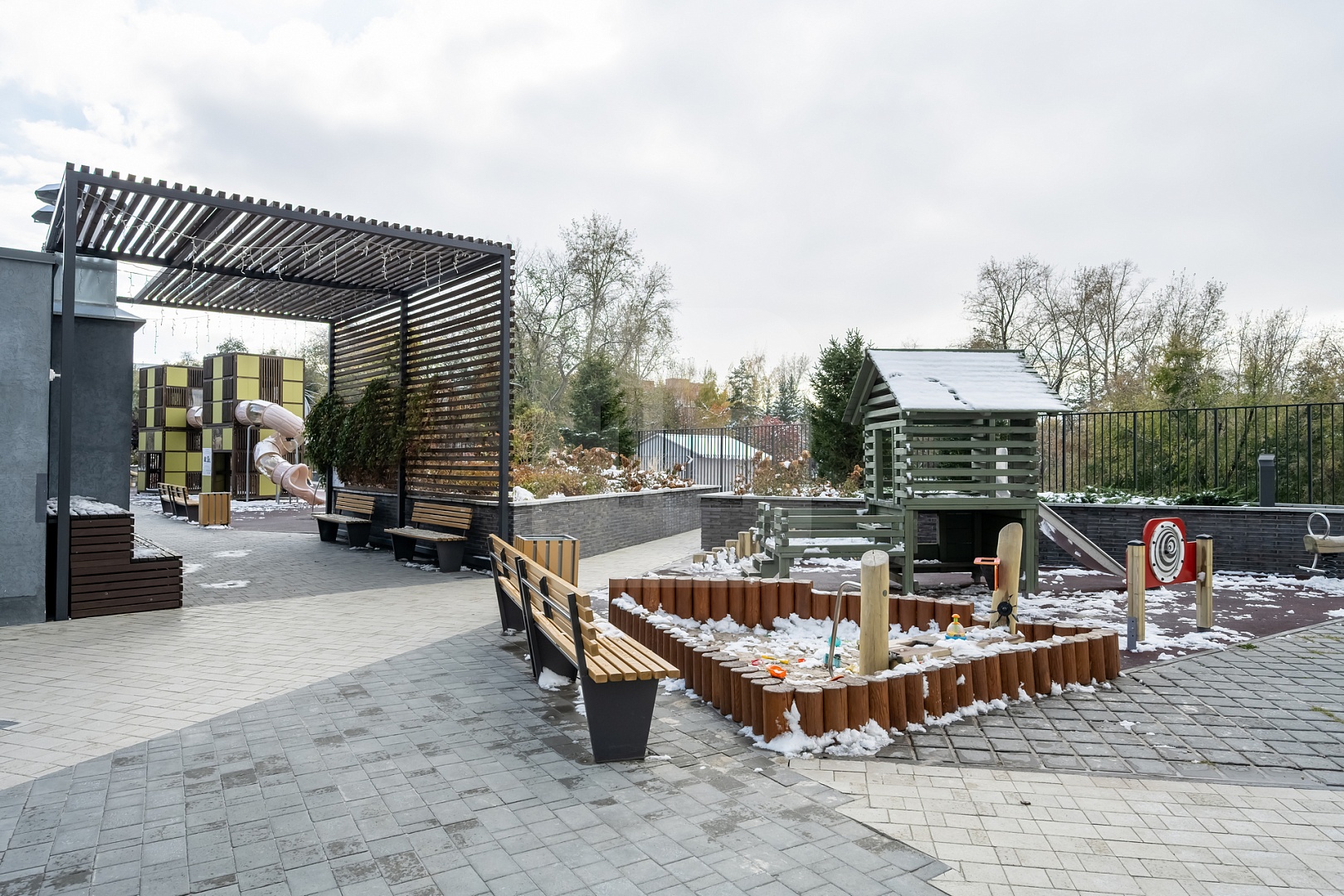 Огороженная придомовая территория с современной детской площадкой. По периметру дома ведется видеонаблюдение.