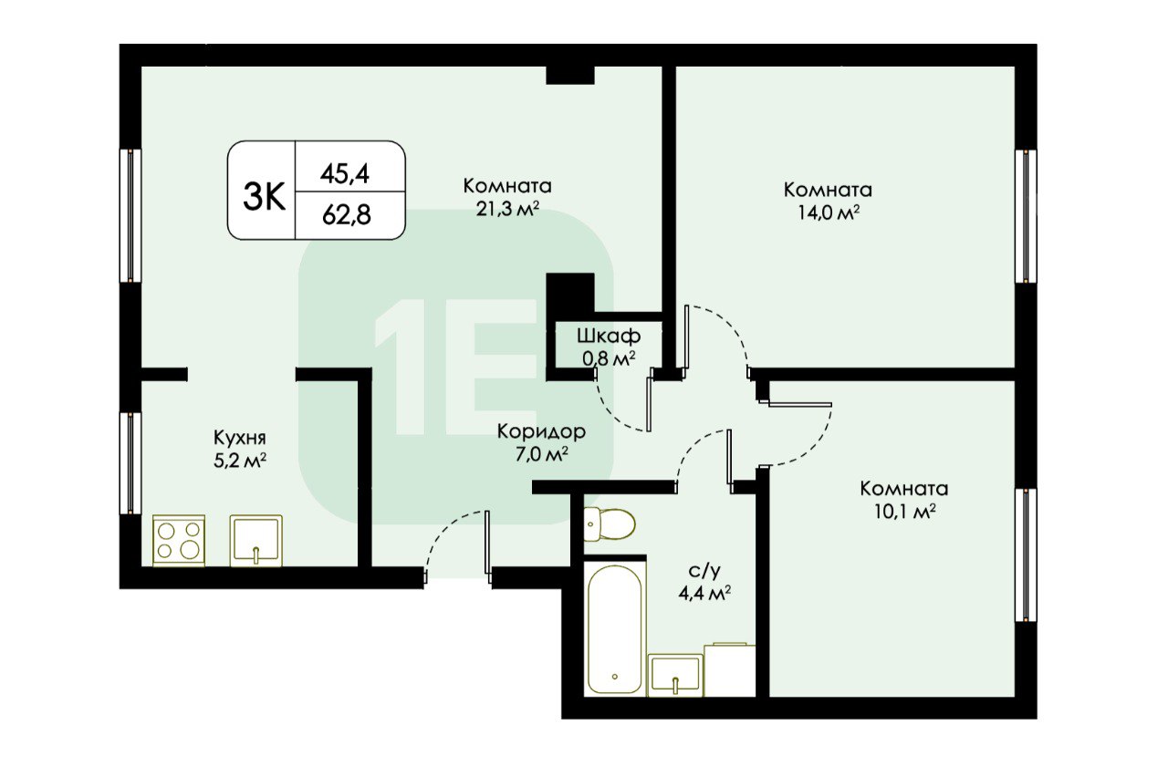 Купить 3-комн. квартиру 62.8 м2