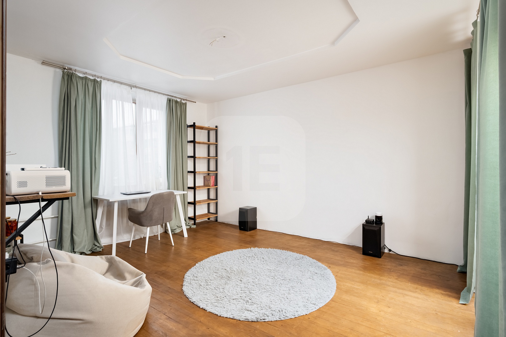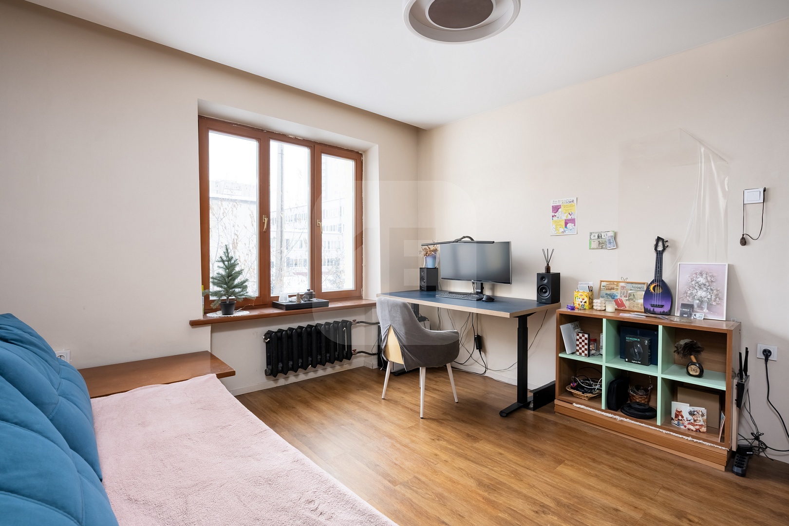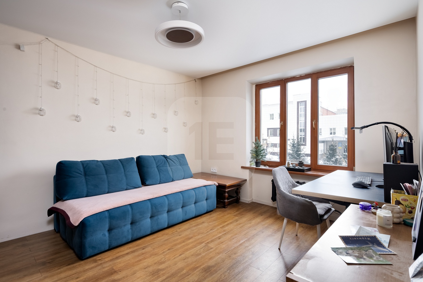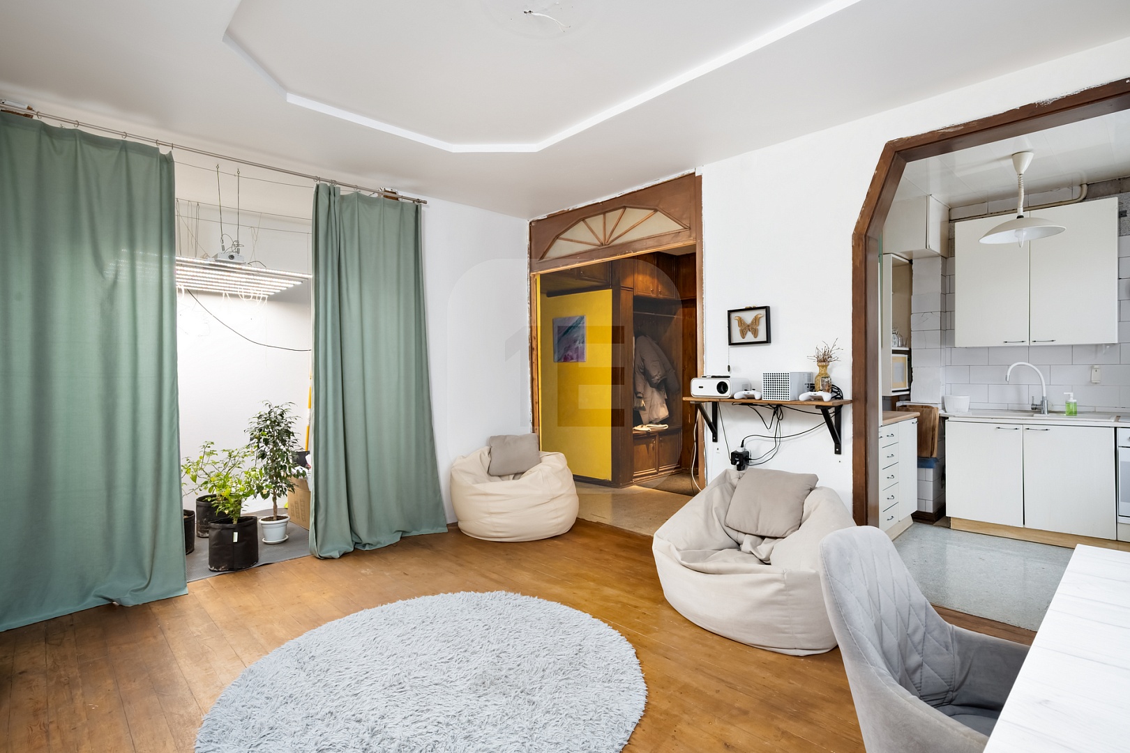 — Удобная планировка: кухня‑гостиная + спальня + кабинет (или детская).